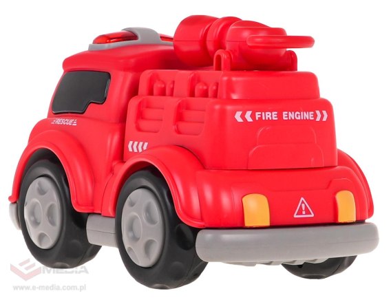 Interaktywne autko straży pożarnej na magnesy dla dzieci powyżej 3-go roku życia. Autko wykonane zostało z najlepszej jakości plastiku i posiada efekty dźwiękowe i świetlne. Po naciśnięciu góry pojazdu usłyszymy wesołe piosenki, syreny strażackie czy też śmiech dziecka. Efektom dźwiękowym towarzyszą kolorowe światełka na dachu pojazdu. Pojazd rozłożyć możemy na czynniki pierwsze, bez pomocy żadnego narzędzia. Poszczególne elementy posiadają magnesy, dzięki czemu łatwo i trwale łączą się ze sobą. Zabawka zasilana jest bateriami typu 3 X AG13 (w zestawie).