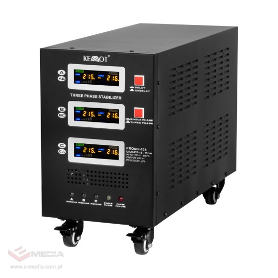 Pomimo, że w Polsce napięcie wynosi 230 V, to jednak często zdarzają się sytuacje, że jest ono niestabilne. Efektem tego może być nagłe wyłączenie urządzeń lub ich niestabilna praca, które wpływają na obniżenie żywotności urządzeń elektronicznych. Dlatego, aby ustrzec się przed tego typu sytuacjami, warto kupić automatyczny trójfazowy stabilizator napięcia KEMOT PROavr-15k.