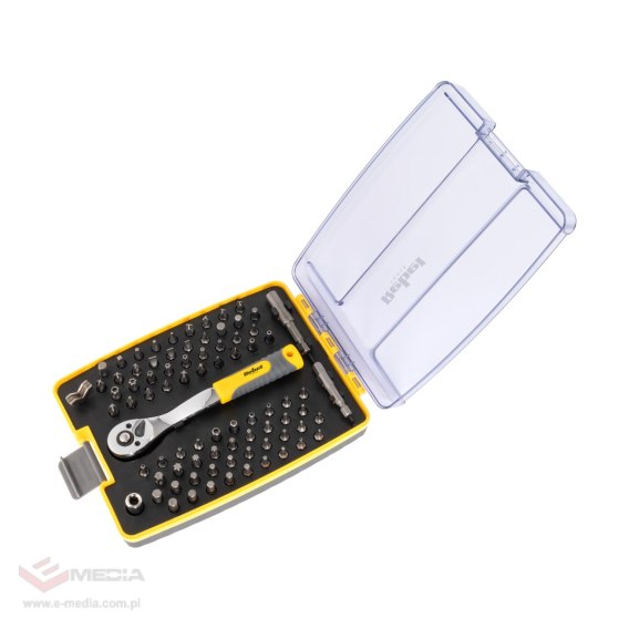 Dzięki 80 różnym bitom o zróżnicowanych kształtach i rozmiarach bez problemu poradzisz sobie z niemal każdym typem śrub i wkrętów. Nasadki o różnych średnicach i długościach umożliwiają komfortową pracę nawet w trudno dostępnych miejscach. Dodatkowe adaptery zwiększają kompatybilność zestawu z innymi narzędziami, co czyni go jeszcze bardziej uniwersalnym.