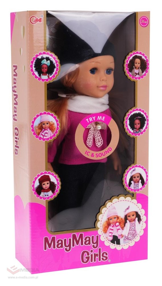 Śliczna lalka, dla dziecka od 3-go roku życia. Lalka jest perfekcyjnie wykończona, z dbałością o każdy szczegół i w pełni bezpieczna dla dziecka. Ubrana jest w sweterek, spodnie, buty, czapkę i szalik. Ubranka możemy zdejmować i przebierać lalkę w inne. Ruchome nóżki, rączki i głowa, ułatwiają przebieranie. Lalka zasilana jest bateriami typu 3 AG13 (w zestawie), po naciśnięciu na jej brzuszek słychać wesołą piosenkę. Zabawka stymuluje rozwój motoryczny dziecka.