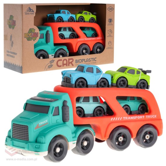 Laweta + 4 Autka BIOplastik dla dzieci 18m+ Czerwony + Dźwięki Światła + Ruchome elementy + Ekologiczny materiał