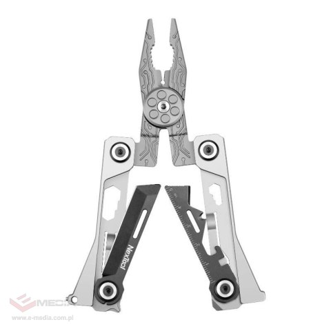 Zintegrowane funkcje narzędzia EDC obejmują klucz sześciokątny 3mm, 4mm, 5.5mm, 6mm, 7mm, 8mm, skrobak, otwieracz do kartonów, ściągacz izolacji, miarka, otwieracz do butelek, klucz do szprych, płaski śrubokręt, przecinak do drutu, szczypce uniwersalne, szczypce do grubego drutu, nóż, krzyżakowy śrubokręt, otwór do zawieszania, szczypce igłowe. Każda z funkcji została zaprojektowana tak, aby sprostać różnym wyzwaniom, z jakimi możesz się spotkać na co dzień lub w czasie przygód poza domem.