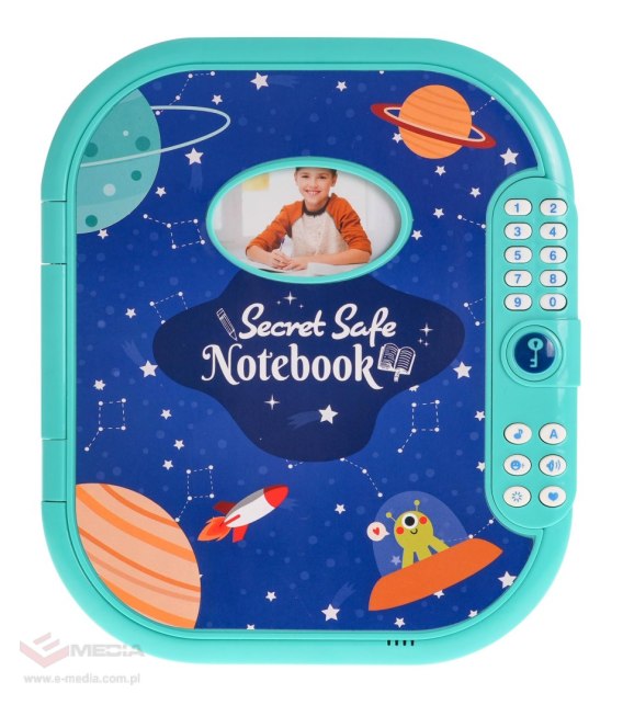 Sekretny notatnik, sejf z zamkiem szyfrowym to propozycja dla dzieci od 3-go roku życia. Zabawka wykonana została z wysokiej jakości tworzywa sztucznego. Wewnątrz sejfu znajduje się notatnik i pisak do pisania sekretnych informacji, oraz ukryta przegródka na ważne drobiazgi. Na przodzie sejfu możemy umieścić w specjalnej przegródce swoje zdjęcie, by jeszcze bardziej spersonalizować swój sejf. Przed pierwszym użyciem notatnika, należy ustawić hasło złożone z czterech cyfr. Zabawka posiada efekty głosowe w języku angielskim. Zasilana jest bateriami typu 3 x AA 1,5V, baterii brak w zestawie.
