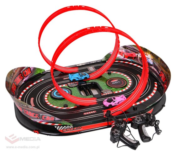 Niesamowity tor wyścigowy Speed Track z dwoma pętlami dla dzieci od 6-go roku życia. Zabawka posiada efekty dźwiękowe (odgłos jazdy samochodu wyścigowego) oraz efekty świetlne (przednie światła samochodu, prędkościomierze na torze). Zestaw nie wymaga użycia baterii, sterowana jest manualnie, wystarczy obracać korbką w kontrolerze by wprawić w ruch pojazd. Im szybciej kręcimy tym szybciej nasz pojazd będzie sunął po torze. Istnieje możliwość przekształcenia toru w wersję R/C po zakupie pilotów i zasilacza. Funkcje zestawu: - sterowany manualnie, - posiada dwie pętle, - podświetlane prędkościomierze na torze, - podczas jazdy w pojazdach świecą się przednie światełka, - słychać odgłosy jazdy samochodu wyścigowego, - posiada licznik okrążeń, - przełącznik ON/OFF, - łatwy do złożenia i rozłożenia, - wygodna rączka do przenoszenia.