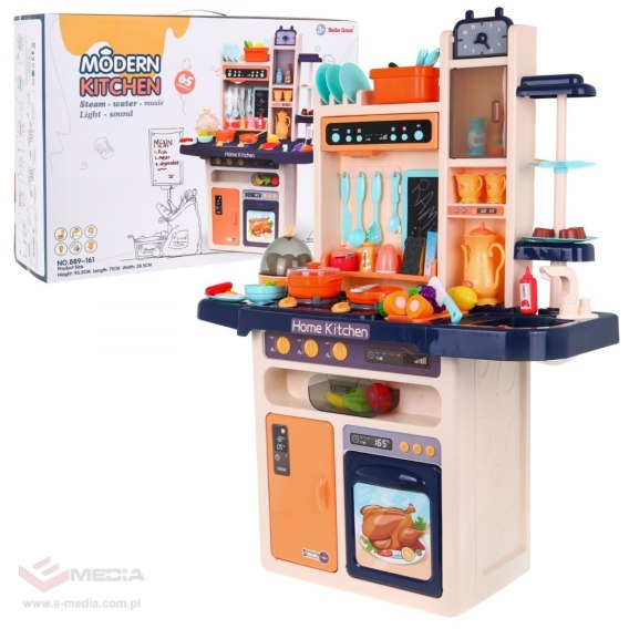 Stylowa niebieska Kuchnia dla dzieci 3+ Kran z wodą + Interaktywny palnik z parą + Panel audio 65 el.