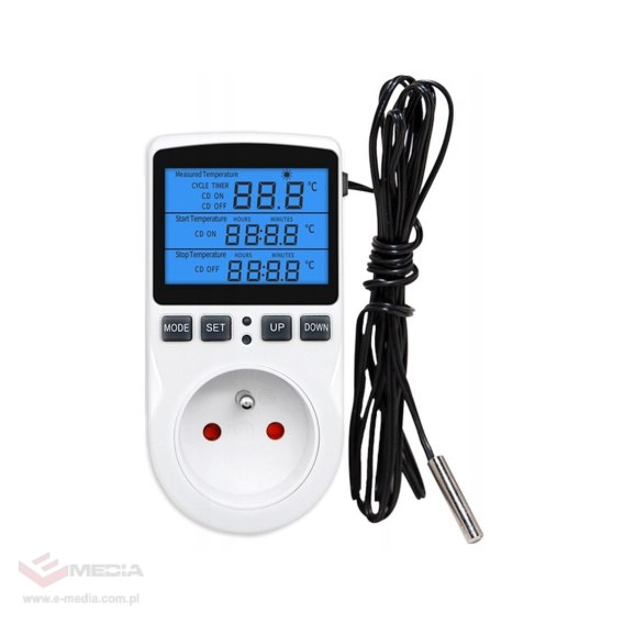 ? Wielofunkcyjny termostat - cyfrowy regulator temperatury gniazdko z przełącznik czasowy, sonda czujnika ogrzewanie chłodzenie 16A 230V 110V