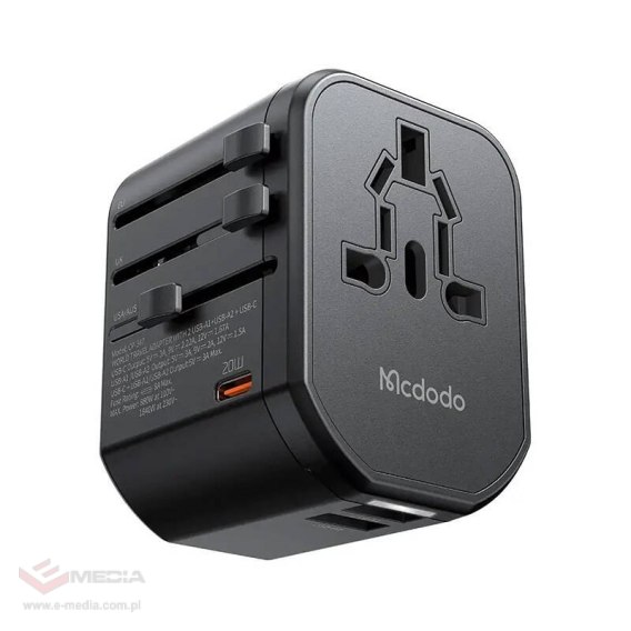 Często podróżujesz? Nie rezygnuj z możliwości wygodnego ładowania i zasilania swoich urządzeń! Uniwersalna ładowarka sieciowa Mcdodo CP-3471 oferuje różne rodzaje wtyczek - EU, US, AU i UK. Aby skorzystać z którejś z nich, wystarczy przesunąć odpowiedni suwak! Produkt zapewnia moc sięgającą 20 W i ma aż 3 porty - 1x USB-C i 2x USB-A. Może też pełnić rolę gniazdka.