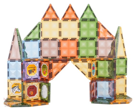 Bogato wyposażony zestaw klocków magnetycznych dla dzieci od trzeciego roku życia. Zestaw składa się z klocków magnetycznych, elementów do naklejenia naklejek  i naklejek. Klocki magnetyczne wykonano z trwałego tworzywa sztucznego. Łączą się ze sobą za pomocą magnesów neodymowych. Możemy je łączyć w różnych konfiguracjach i pod różnymi kątami, tworząc konstrukcje 3D. Układanie klocków pozytywnie wpływa na rozwój kreatywności, uczy cierpliwości i skupienia.