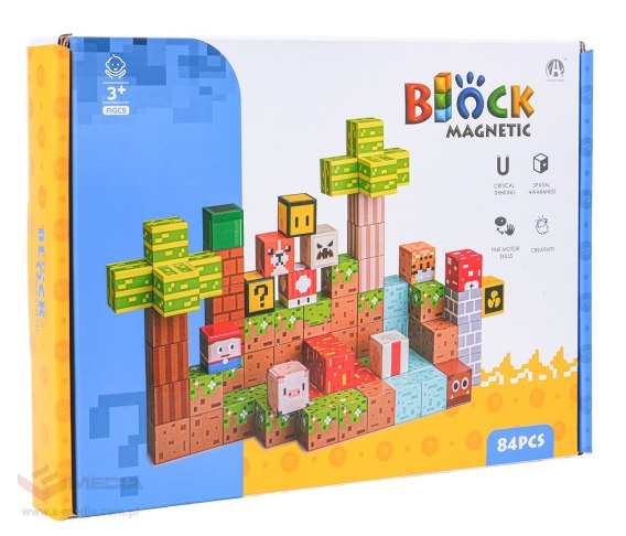 Zestaw 84 kolorowych klocków, magnetycznych kostek 3D dla dzieci od trzeciego roku życia. Klocki magnetyczne wykonano z najlepszej jakości materiałów w żywych kolorach. Można z nich zbudować różne konstrukcje. Magnesy neodymowe bardzo solidnie trzymają, tworząc stabilną konstrukcję. Układanie klocków uczy logicznego myślenia i ćwiczy rączki dzieci.