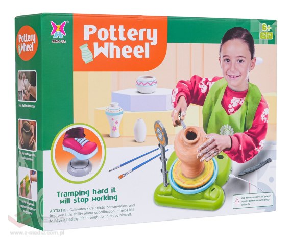 Zestaw małego garncarza to edukacyjna zabawka do samodzielnego robienia oraz malowania ceramicznych naczyń, dla dziecka od szóstego roku życia. Dziecko może zrobić swoje własne doniczki, kubeczki czy dzbaneczki, a następnie je ozdobić farbkami według własnego pomysłu. Koło garncarskie obraca się w dwóch prędkościach, wolniejszej i szybszej. Zabawka pobudza wyobraźnię, rozwija umiejętności zręcznościowe, manualne i plastyczne. Zasilanie kabel typu C napięcie nie większe niż 5V.