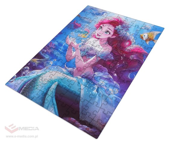 Zestaw puzzli 100 elementów z syrenką dla dzieci od trzeciego roku życia. Po ułożeniu powstaje obrazek z elementami brokatu, o wymiarach 43 cm x 29 cm. Układanie puzzli uczy nas koncentracji, a także skupienia na jednej rzeczy. Pozwala nam się odstresować, zapomnieć o problemach. Puzzle uczą nas logicznego myślenia, dopasowania kształtu i korzystnie wpływają na naszą pamięć wzrokową.