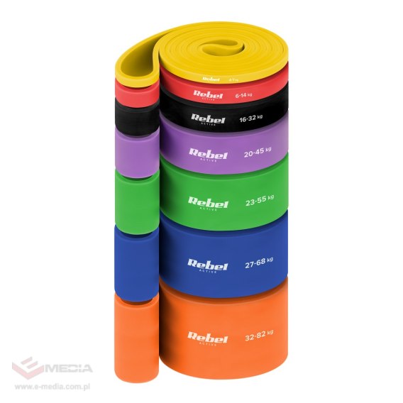 Zestaw gum do ćwiczeń TPE - Power Band PT-S7, 4-82 kg, 7 gum TPE, REBEL ACTIVE