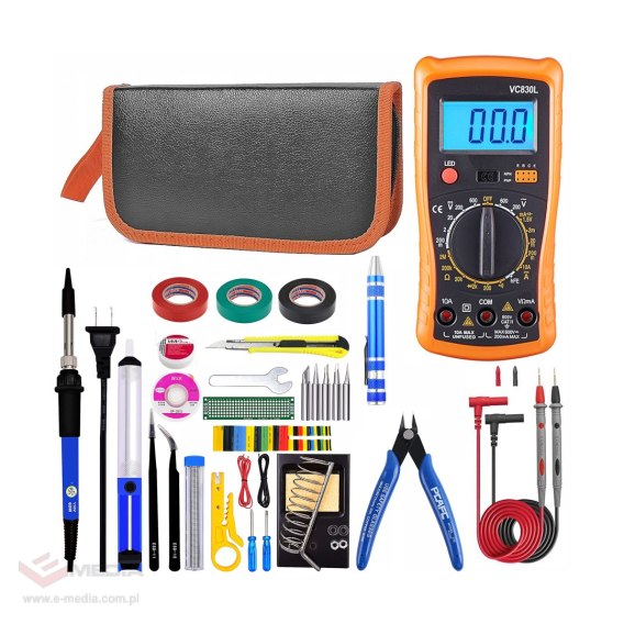 Duży zestaw narzędzi elektrycznych z lutownicą i multimetrem E6180
