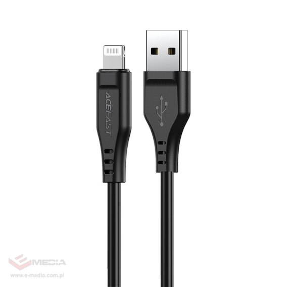 Kabel USB - Lightning do ładowania i przesyłania danych marki Acefast. Przeznaczony jest do urządzeń marki Apple ze złączem Lightning. Ma długość 120 cm i jest przystosowany do pracy z prądem o natężeniu do 2,4 A. Posiada certyfikat MFI (Maide For iPhone), dzięki czemu telefon nie wyświetli komunikatu o nieoryginalnym akcesorium.