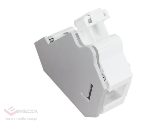Adapter do montażu modułów keystone na szynie DIN 35 mm (TH35) z funkcją uziemienia. Konstrukcja adaptera umożliwia stosowanie zgodnie z zaleceniami gniazd RJ typu keystone jack zarówno w wersji ekranowanej (pełne uziemienie) jak i nieekranowanej. Adapter wyposażony jest w tabliczkę opisową i zajmuje szerokość jednego modułu, co pozwala na równomierne rozmieszczenie na szynie. Posiada mechaniczny element wypięcia.