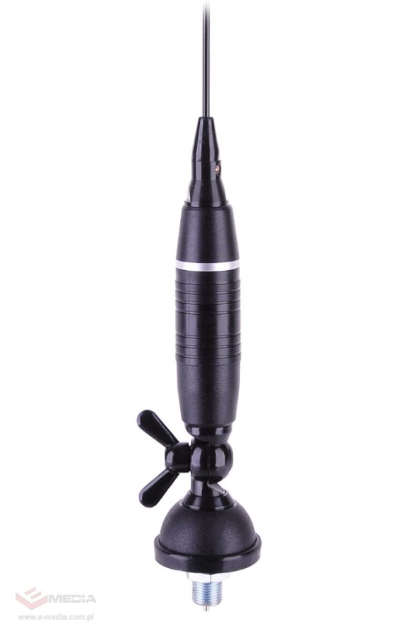 Antena o długości 80 cm zapewnia doskonały zasięg, a bezpośredni montaż na gwint z kątem regulacji od 0° do 90° umożliwia dopasowanie do różnych pojazdów i preferencji użytkownika. Wyposażona w 4-metrowy kabel oraz wtyk PL-259, jest gotowa do szybkiego podłączenia do radia CB. Otwór montażowy o średnicy 12,5 mm pozwala na pewne i trwałe zamocowanie anteny na pojeździe.