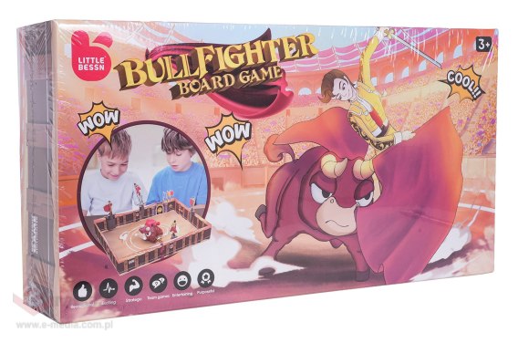 Planszowa, rodzinna gra Toreador, której gracze wcielają się w rolę toreadorów, dla dzieci od trzeciego roku życia. Gra polega na rzucaniu dwoma kostkami i przesuwaniu figurki toreadora od startu do mety. To zadanie będzie utrudniał szalejący byk. Kostki mogą wskazać o ile pól się przesunąć, czy wylosować kartę, czy uruchomić byka, czy użyć barierki zabezpieczającej przed bykiem, czy ją zdemontować. Pierwszy gracz, który dotrze do mety, zdobywa flagę i wygrywa. Możemy zacząć rozgrywkę jeszcze raz. Na mistrza rozgrywek czeka korona. Byk zasilany jest bateriami typu 3 x AAA 1,5V (brak w zestawie).
