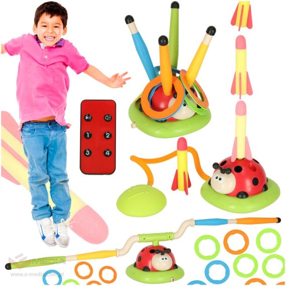 Interaktywna biedronka została wyposażona w moduł skakanki dla dzieci przez przeszkodę, dzięki czemu zapewnia doskonałą zabawę rozwijającą refleks i koordynację ruchową. Funkcja wyrzutni rakiet dla dzieci pozwala maluchom ćwiczyć zręczność i rozwijanie umiejętności w naturalny, atrakcyjny sposób. Rzut do celu to gra zręcznościowa rozwijająca celność, wspiera ruch dziecka i jego ogólny rozwój. Całość tworzy różnorodną, rozwijającą zabawę pełną energii dla dzieci w różnym wieku.