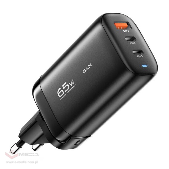 Przygotuj swoje urządzenia do pracy z Essager. Ładowarka pracuje z mocą 65 W, a dzięki zastosowaniu technologii GaN jest wyjątkowo wydajna. Do Twojej dyspozycji będą aż 3 porty, w tym 2x USB-C i USB-A, które umożliwiają ładowanie kilku urządzeń jednocześnie, w tym na przykład 2 laptopów. Obsługa protokołów PD3.0 i QC3.0 dodatkowo usprawnia proces odnawiania energii.