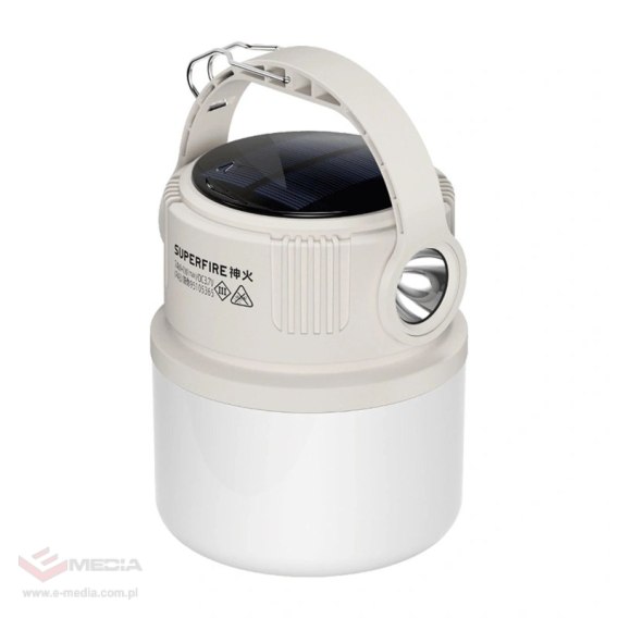 Superfire T22 oferuje do 25 godzin pracy w trybie bocznego światła, co pozwala przetrwać całą noc bez konieczności ponownego ładowania. Główne światło kempingowe działa przez około 5 godzin, co w praktyce wystarcza na standardowy wieczór przy ognisku lub w namiocie. Dodatkowo lampka została wyposażona w panel solarny umożliwiający ładowanie energią słoneczną, co jest szczególnie przydatne w lokalizacjach, gdzie brakuje dostępu do stałego zasilania. W sytuacjach, gdy potrzebne jest szybkie uzupełnienie energii, można skorzystać ze standardowego kabla USB-C.
