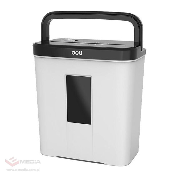 Niszczarka Deli tnie papier na paski 4 x 25 mm, a prędkość jej pracy sięga 2 m/min. Jej obsługę ułatwia wygodny panel, a zbiornik o pojemności 12 l redukuje częstotliwość jego uzupełniania. Ponadto potrafi ciąć 5 kartek A4 jednocześnie i została wyposażona w ochronę przed skaleczeniem i przegrzaniem.