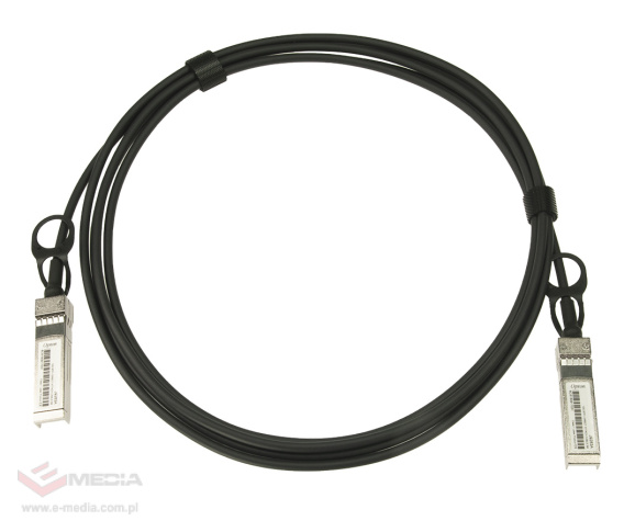 Direct attach cable firmy Opton, długość 3 metry. Jest to kabel miedziany (AWG24) zakończony wkładkami, które mogą być wykorzystane zarówno w slocie SFP, jak i SFP+. Produkt doskonale sprawdzi się do łączenia urządzeń w szafie / serwerowni. Maksymalna przepustowość wynosi 10 Gb/s.