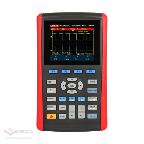 Pomiar automatyczny: Peak-to-Peak, amplituda, wartości: maksymalna, minimalna, szczytowa, dolna, środkowa, średnia, RMS, przedwyzwalanie, częstotliwość, okres, czas narastania, czas opadania, wartość dodatnia/ujemna impulsu, współczynnik wypełnienia