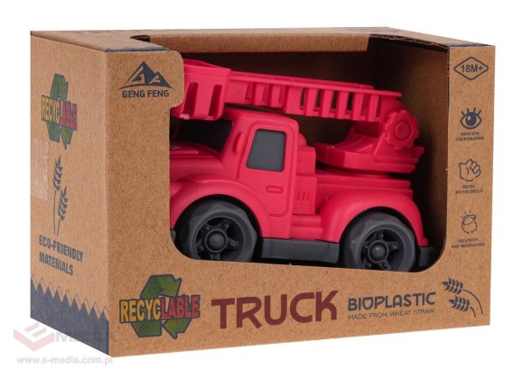 Auto Straży Pożarnej wykonane z Bioplastiku z ruchomymi elementami, dla dzieci od 18-go miesiąca życia. Bio-tworzywo zastosowane w tym pojeździe, jest bezpieczne dla dziecka i środowiska naturalnego. Zabawka posiada żywe kolory i jest wytrzymała i odporna na urazy. Wysięgnik straży pożarnej, możemy podnosić manualnie w górę i w dół oraz obracać go o 360 stopni. Obrotowe kółeczka umożliwiają przemieszczanie się pojazdu.