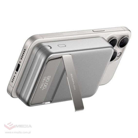 Produkt EcoFlow wspiera również bezprzewodowe ładowanie z mocą 15W, umożliwiając szybkie ładowanie bez konieczności korzystania z kabli. Dzięki kompatybilności ze standardami Qi1.0 (5W) oraz Qi2.0 (15W) powerbank dostosowany jest do bezprzewodowego odnawiania energii urządzeń z systemem Android oraz iPhone'ów od modelu 13 wzwyż. Aby naładować iPhone'a 15 do 50%, wystarczą 44 minuty.