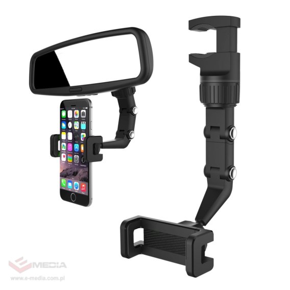 Regulowany uchwyt na lusterko wsteczne samochodu do smartfona czarny