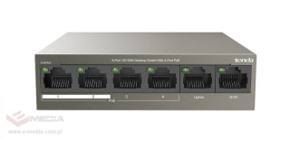 Tenda TEF1106P-4-63W to switch wyposażony w 6 portów fast Ethernet o prędkości 10/100 Mb/s. Ciekawą i przydatną funkcją tego urządzenia jest możliwość zasilania urz...