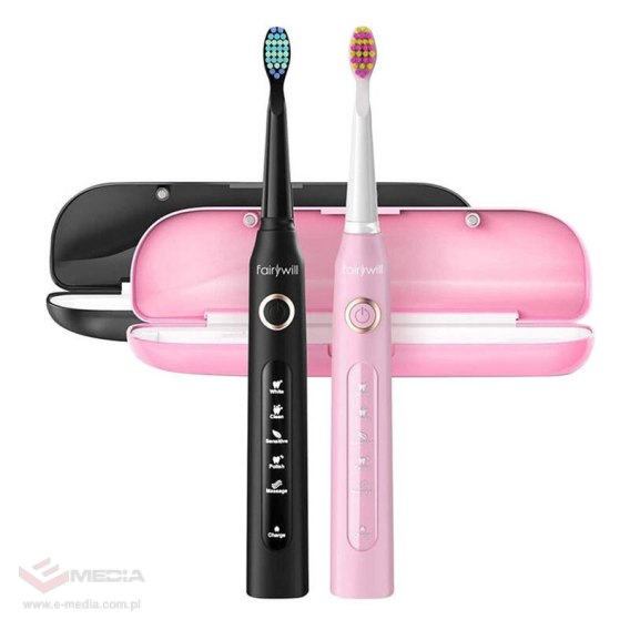 Szczoteczki soniczne do zębów z zestawem końcówek i etui FairyWill FW-507 (Czarna i Różowa)
