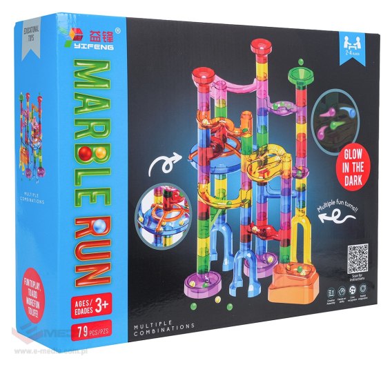 Kolorowy, wytrzymały, tor do samodzielnego montażu ze świecącymi w ciemności kuleczkami dla dzieci od trzeciego roku życia. Zabawa polega na samodzielnym zbudowaniu konstrukcji toru, a potem puszczaniu piłeczek tunelami. Puszczanie w ruch kuleczek i obserwowania jak pokonuje kręte tunele, daje mnóstwo radości, uspokaja i wycisza. Zabawka pozytywnie wpływa na rozwój kreatywności, wyobraźni i zdolności manualnych.