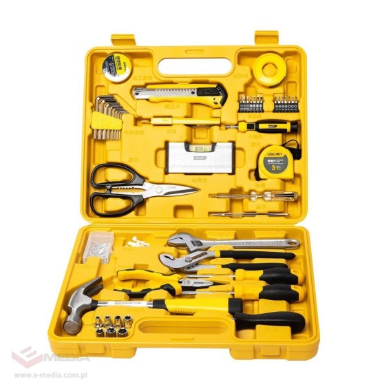 Zestaw Deli zawiera 48 narzędzi, które z pewnością wykorzystasz. Montaż szafki, kuchennych akcesoriów, lampy - w tych i podobnych sytuacjach przyda się EDL1048J. Wszystkie elementy zestawu umieszczono w praktycznej walizce, dzięki której ich przechowywanie będzie proste i wygodne. Zestaw zawiera: nożyk z regulowaną długością ostrza, 10 zapasowych ostrzy, nożyczki, odporną na wodę i ogień taśmę izolacyjną o długości 3 m, taśmę teflonową oraz zwijaną, 3 m miarkę. W opakowaniu znajdziesz też: 2 wkrętaki z antypoślizgowym uchwytem, szczypce ze stali nierdzewnej, młotek szewski ze stali węglowej, klucz nastawny (8") z chromowanym wykończeniem i szczypce nastawne. Ponadto w skład EDL1048J wchodzą: zestaw kluczy imbusowych, pokrętło i zestaw nasadek sześciokątnych, pokrętło do bitów 4 mm, zestaw bitów, próbnik napięcia do gniazd z napięciem w zakresie 100-500V, nylonowe opaski zaciskowe oraz pęsetę ze stali nierdzewnej.
